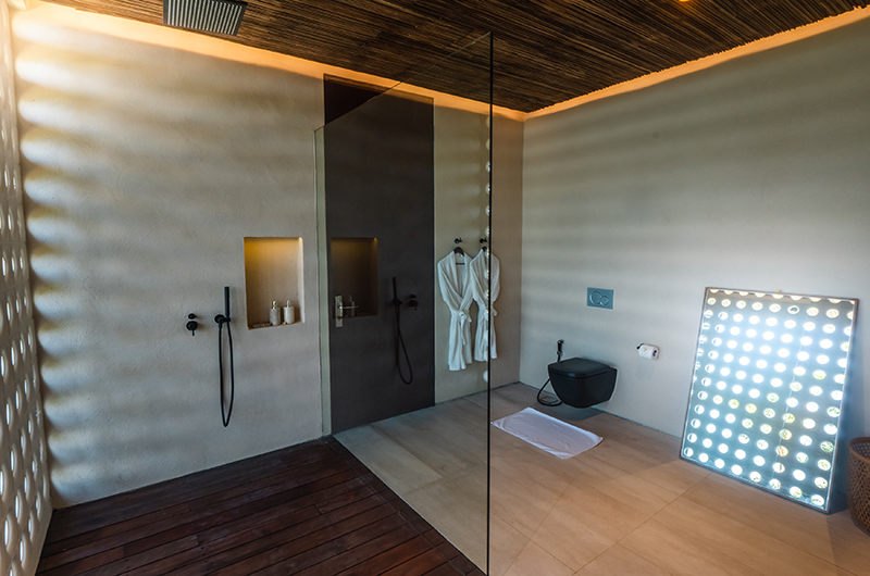 Designed by architect Alejandro Borrego, Villa Solah was inspired by the modern homes of the Mediterranean. Facing south, the villa provides amazing views of the ocean bay – especially from the two swimming pools and the decadent bathtubs perched on scenic balconies. The villa’s design and furnishings are sleek, modern and minimalist, with subtle bohemian touches and natural materials giving gentle nods to the relaxed lifestyle of the tropics. The use of hollow concrete blocks invites a fresh breeze while also creating a unique play of light as the sun travels across the sky.