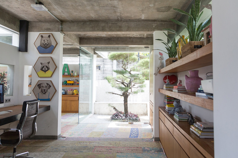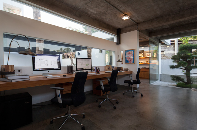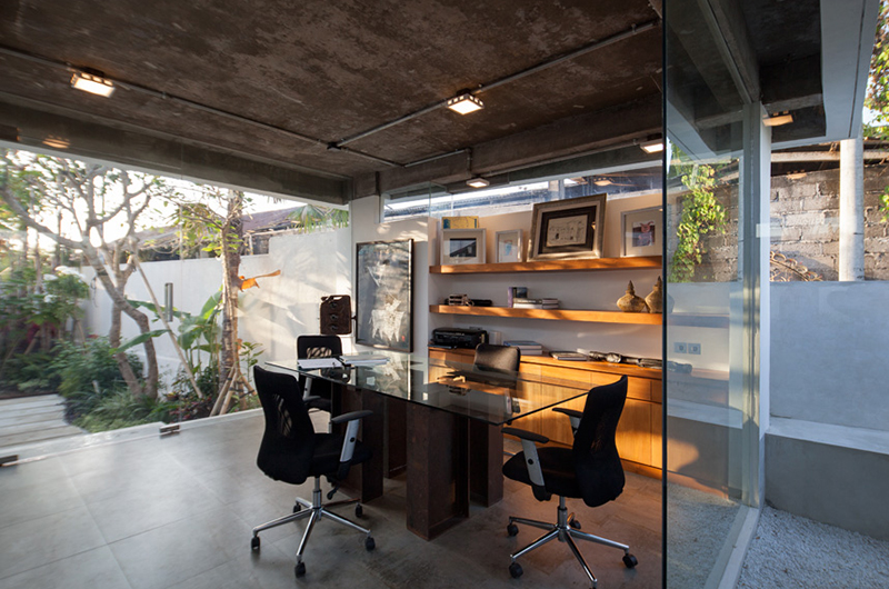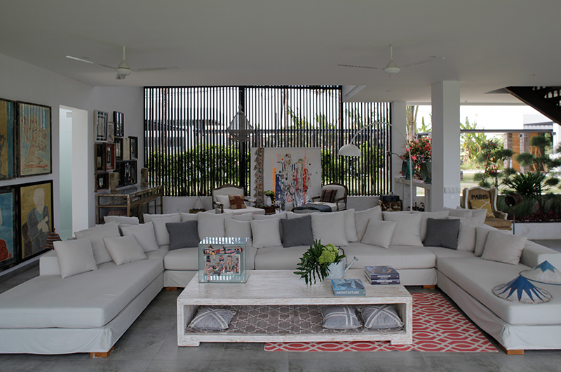 Villa Suami’s living room has an open-sided living room and it directly connects to a neat stretch of lawn. The room is furnished with huge white sofas, arm chairs and unique rustic art lining the walls. The villa has multiple living and lounging areas, including an enclosed TV room. If you need to catch up on some emails, Villa Suami also has a sleek office room. Kids are also well catered to as the villa comes with a dedicated playroom housed in its own pavilion, decked out with toys and cute toy cars.