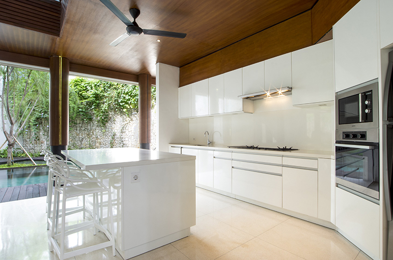 Villa Summer is a three-bedroom villa that’s built over two floors. The ground floor houses the open-plan living and dining room which offers direct access to the villa’s main pool which measures at 10 x 3 metres. The master bedroom is also located on the ground floor and offers access to a private five-metre plunge pool. There are two more bedrooms upstairs on the first floor. There’s also a TV room on this upper floor. If you’re travelling with a large group, Villa Summer is located right next to Villa M Bali Seminyak which has five bedrooms.