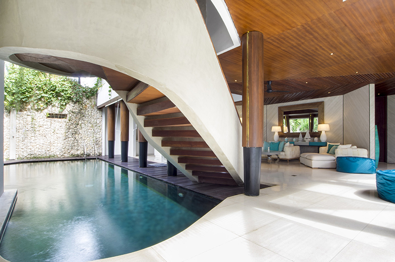 Villa Summer has two swimming pools. The main pool measures at 10 metres long and has a unique angular shape and a generous shallow section. The poolside deck includes beanbag loungers and the pool area is directly connected to the open-sided living room. The second pool is a five-metre plunge pool connected to the master bedroom.