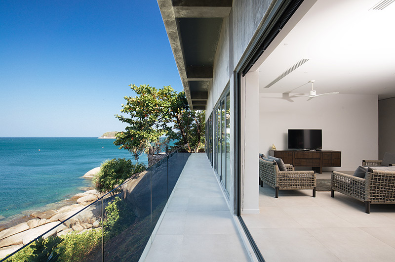 Natural light pours into the living room as you draw open the bi-fold doors. Along with the creamy colours of the wall, the living room looks bright and appealing. While overlooking the calm blue ocean, you can engage in a game of billiards with your friends or family while listening to the stories from folks sitting on the sofa. If you are wanting for some sun, step to the living room outside. It even has a TV console for you to enjoy movies while facing out into the pool.
