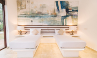 Villa Thuya’s magnificent lagoon swimming pool is built around a huge natural rock formation. The pool also includes a sleek swim-up bar. A deck overlooking the pool offers comfy seating on lounge furniture. If your own swimming pool is not enough, it’s only a few steps to the beach where guests can enjoy a dip in the natural rock pool when in season.