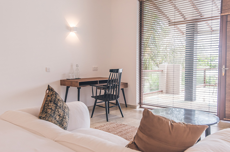 Villa Thuya is a modern villa filled with natural light and classic style, located just steps from the beach on the west coast of Sri Lanka. The villa’s freeform lagoon pool with its swim-up bar is built around a rugged rock formation and the whole villa is surrounded by lush tropical greenery. The rooms are furnished with elegant timeless furniture and the three bedrooms with their luminous décor offer soothing respite from the summertime heat.