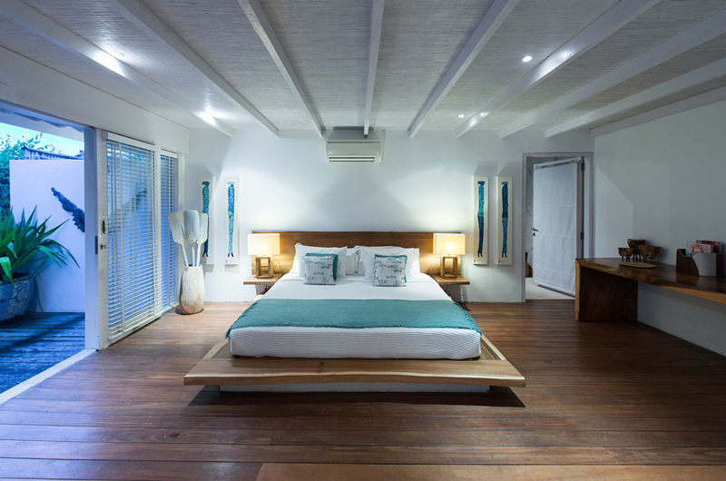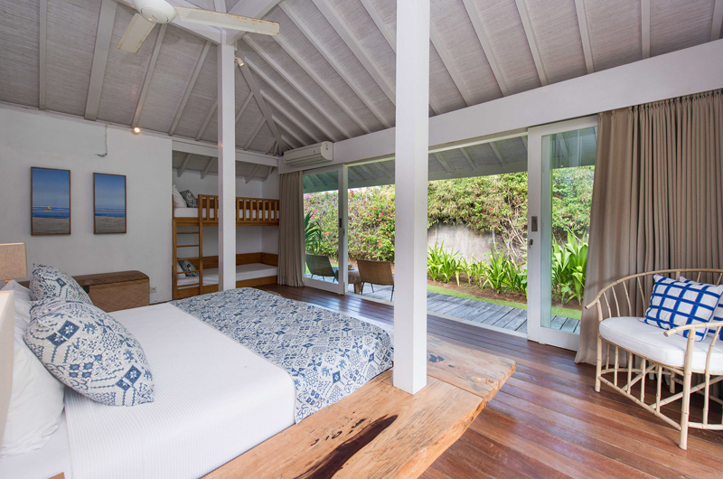 Villa Tranquilla is a four-bedroom villa that’s divided into three pavilion. The main house includes the open-plan living and dining room, enclosed media room and two bedrooms. The second pavilion is a poolside pavilion which houses the master bedroom. The third pavilion houses the family bedroom which includes a king-sized bed and a set of bunk beds.