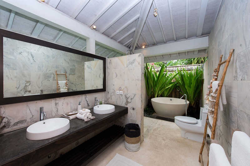 Villa Tranquilla’s living room has an open-sided layout which directly gives out to the poolside terrace. The generous room is furnished with large sofas and a beautiful wicker chair suspended from the ceiling. Villa Tranquilla has a separate air-conditioned TV room.