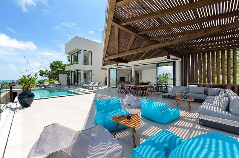 Villa Vida Samui is a four-bedroom villa that’s built over three floors. The ground floor houses one bedroom and a spa room. The middle floor houses the living and dining areas, swimming pool, and one bedroom. The top floor houses two more bedrooms.