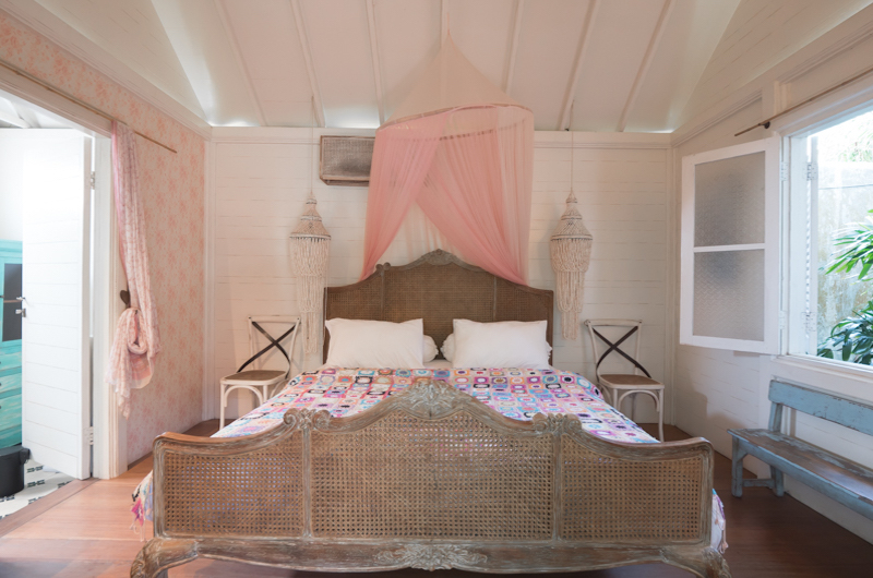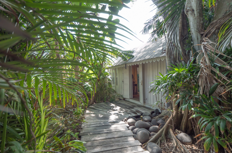 The third bedroom is located in a separate garden pavilion close to the pool, allowing for an added sense of privacy. This room has a king-sized bed and a petite ensuite bathroom with a shower.