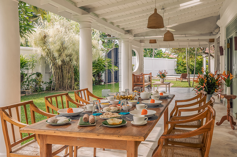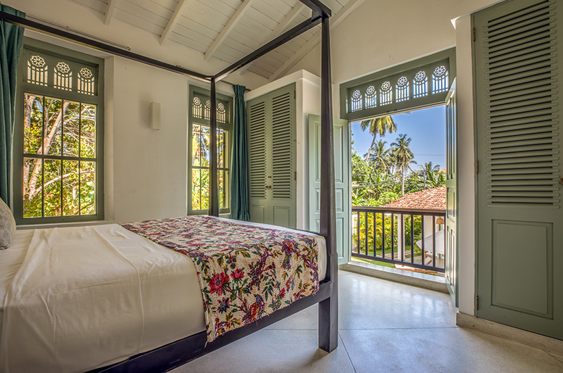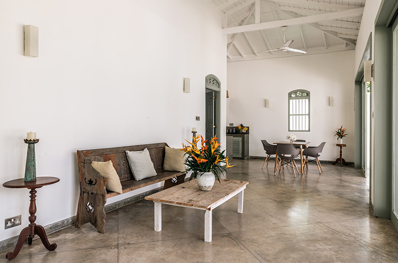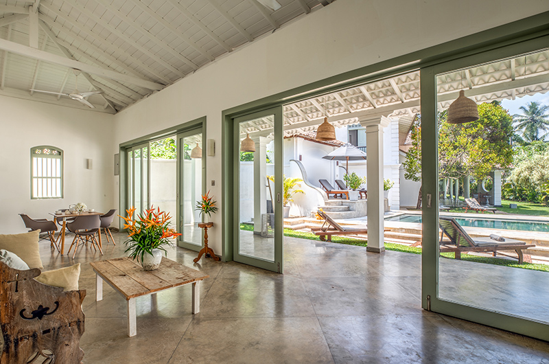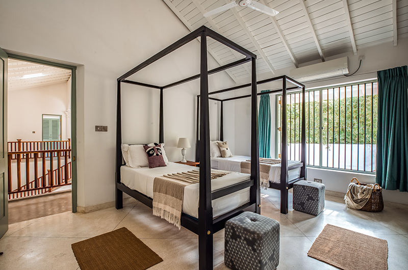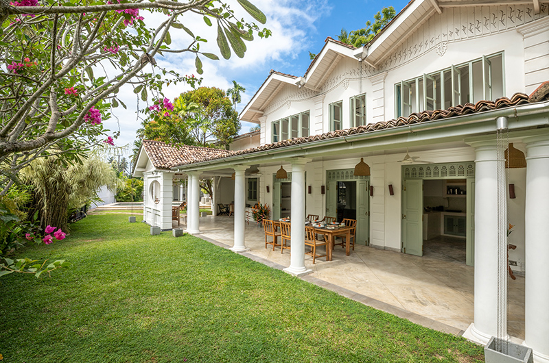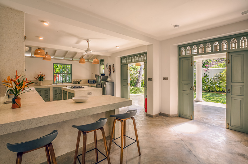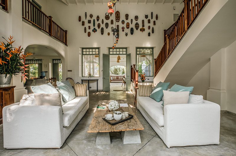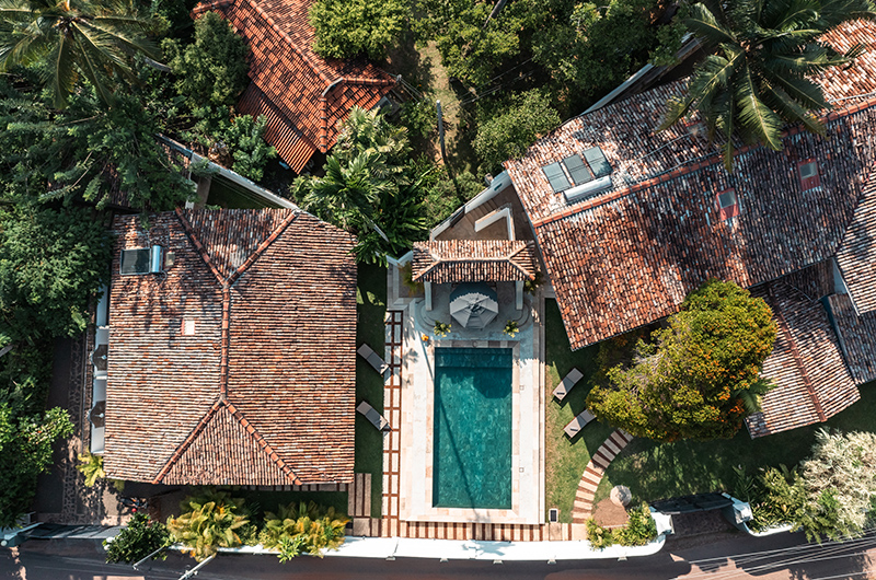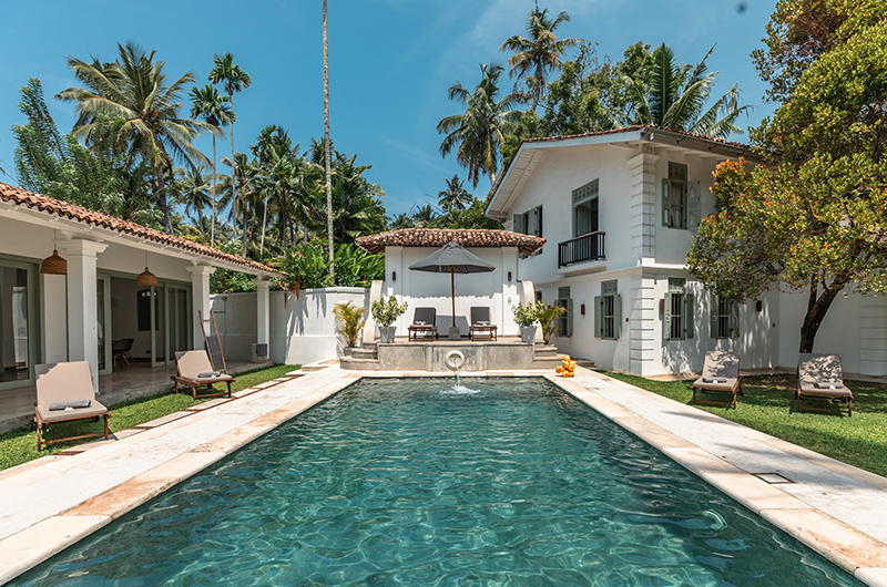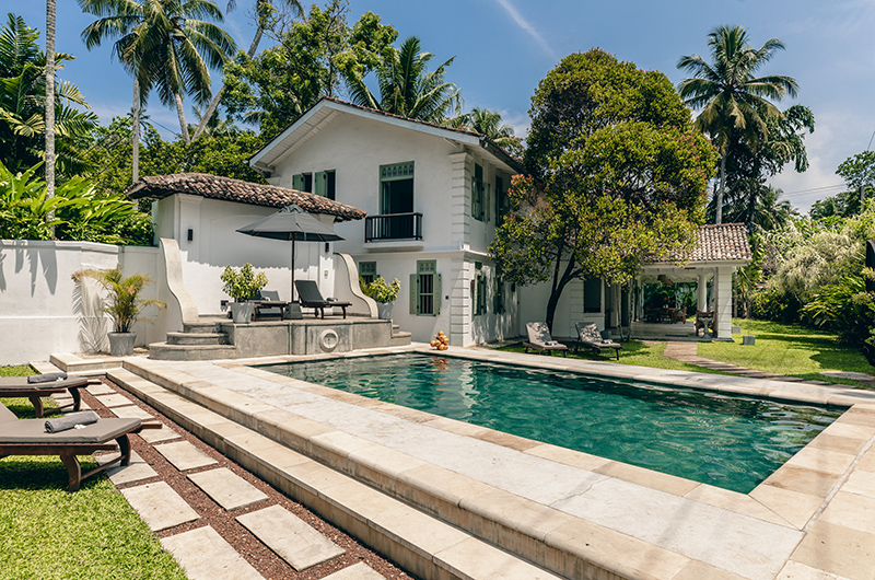 With its white décor and breezy design, Wijaya Giri offers a breath of fresh air in the heart of the lush tropics. Located in the scenic coastal region of southern Sri Lanka, this six-bedroom villa combines luminous white design with traditional Sri Lankan ambiance. Idyllically framed by palm trees, the white villa centres around a sparkling swimming pool and offers ample room in six bedrooms divided into two buildings. Wijaya Giri offers easy access to the area’s beautiful beaches with the historic Galle Fort waiting within a 30-minute drive. If you’re travelling with a larger group, Wijaya Giri is located next to Coconut Grove with four bedrooms.