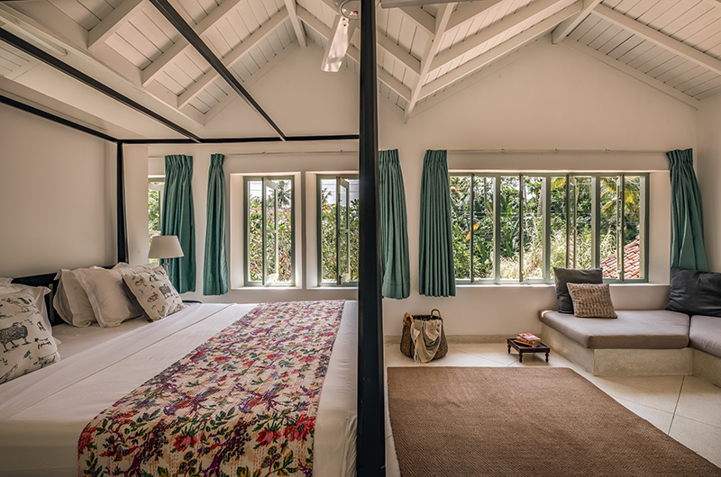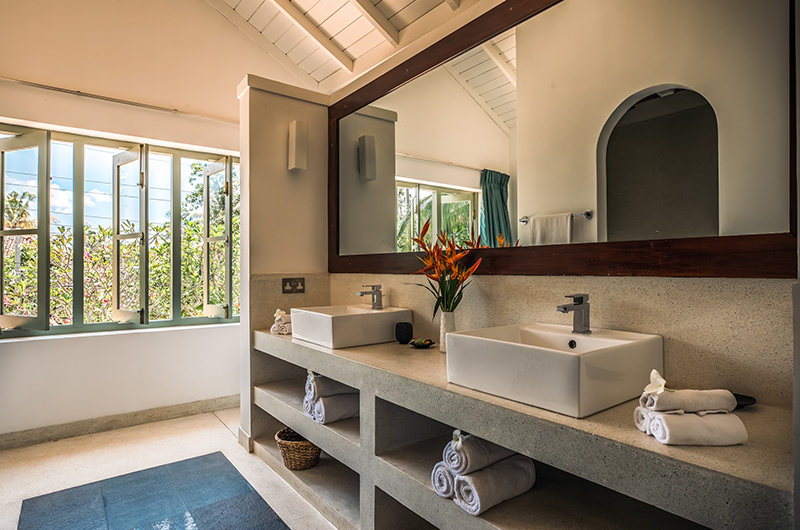 Wijaya Giri has six bedrooms. Five rooms have king-sized beds and one room has two single beds. There are four bedrooms in the main house and two bedrooms are located in a separate garden pavilion.