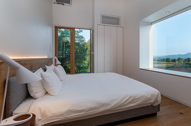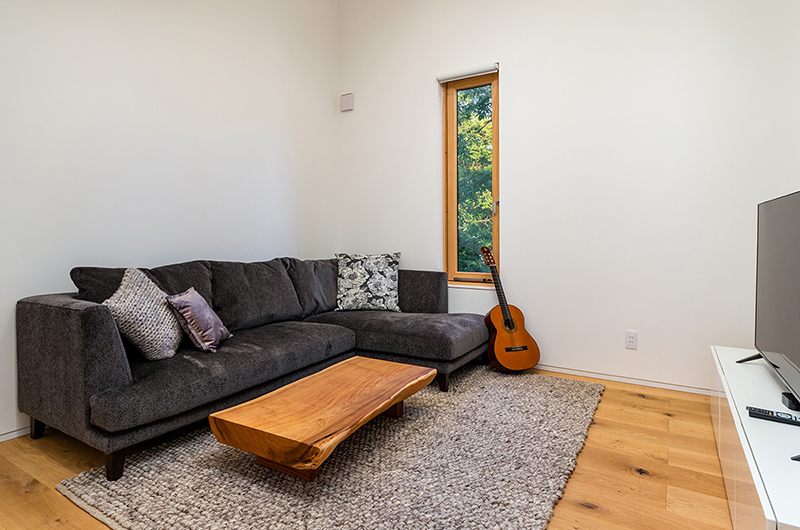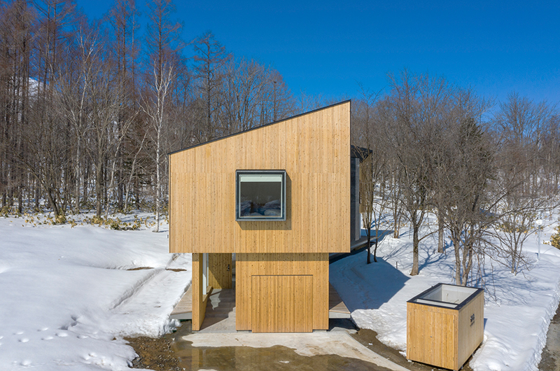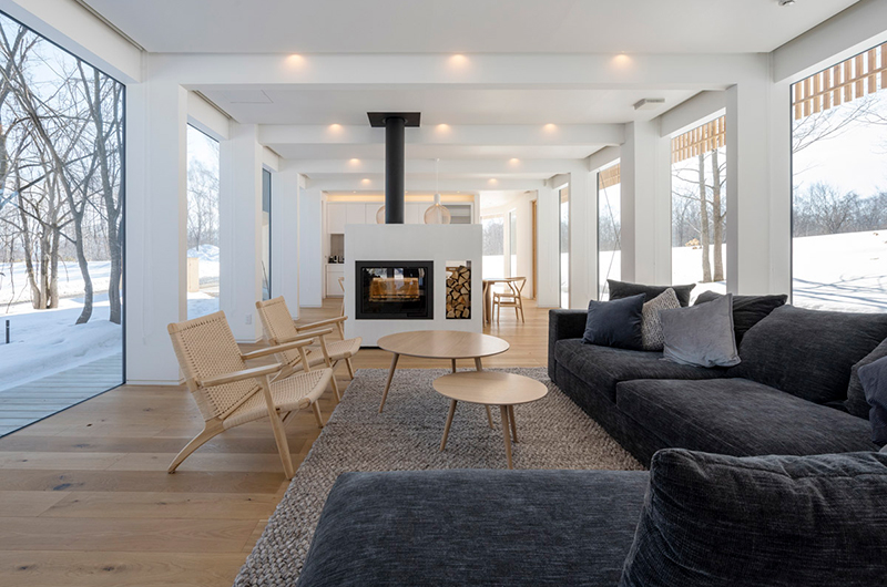The name Yukihyo means snow leopard in Japanese. The moniker is fitting on more than one level. First, there are the seemingly endless windows which frame inspiring views of the surrounding Hokkaido landscape and its exotic flora and fauna. Beyond that, the name captures the essence of the property: sleek, exotic, rare. This chalet truly feels like a work of art, from its bold structure to its gallery-like interiors and the ingeniously placed windows that flood the rooms with light and those spellbinding views.