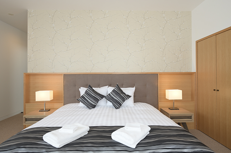 Also located on the ground floor, the third bedroom is a traditional Japanese tatami room. The room features traditional straw mat flooring. It is a great place to relax and socialise during the day, with the media room located just next door. In the evenings, two futon mattresses can be added to create an authentic experience of overnighting in a traditional ryokan inn. While not ensuite, the two standalone bathrooms are located right next door.